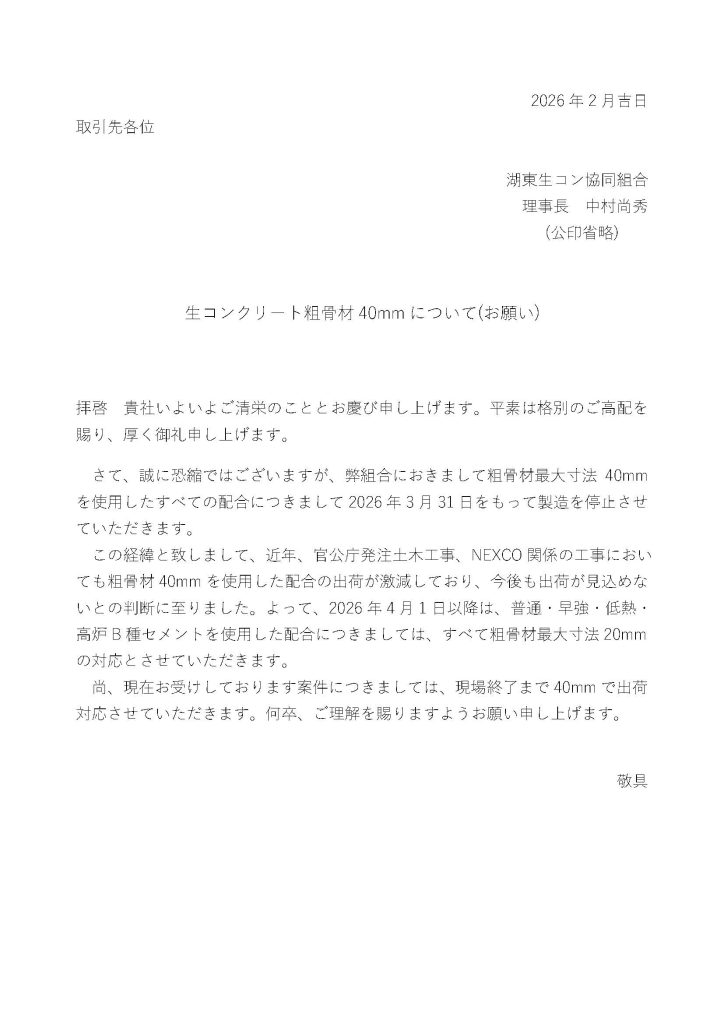 生コンクリート粗骨材40mmについて(お願い)